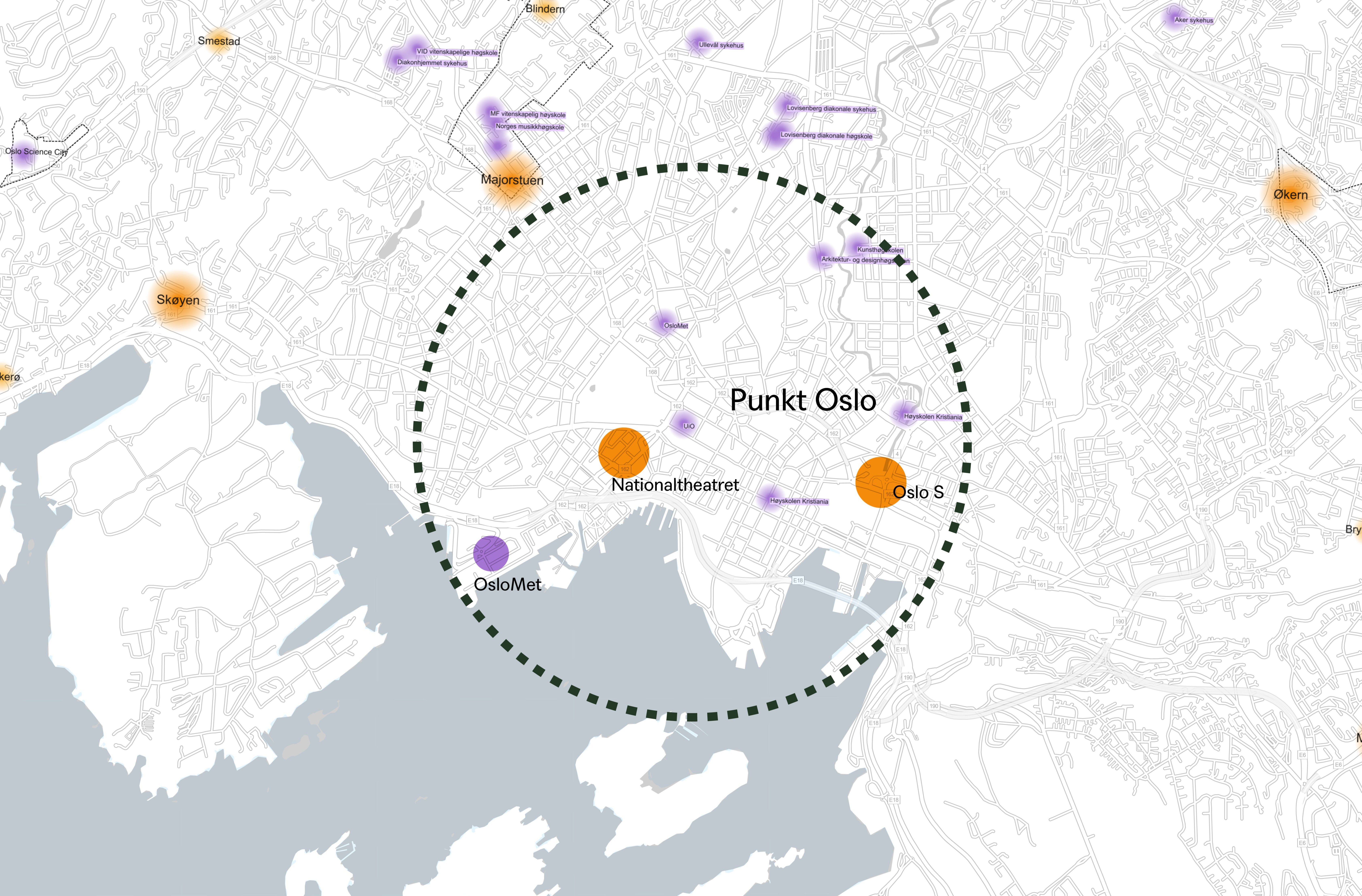 Punkt Oslo jobber for å koble alle disse kloke hodene sammen - studentene, virksomhetene, virkemidlene og folkene i Oslo sentrum med hverandre, for å få til mer innovasjon og løse de store utfordringene Oslo sentrum står overfor.